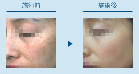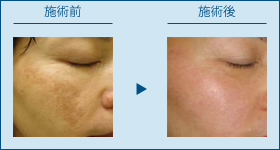 | 肝斑コース | 肝斑のための特別な照射条件により従来効果のなかった肝斑にも効果が期待できます。 1~2週ごとの4回施術が基本治療です。 両ほほ ¥40,000(4回分) 両ほほと額 ¥60,000(4回分) |