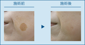 | しみ治療 | QYAGレーザーの中でも短時間(5ナノ秒)の照射時間です。これによってメラニン色素のみに高エネルギーを与え破壊し周囲の細胞には影響を与えずに治療ができます。(料金:¥5,000~) |