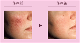 | Vビーム照射 | 「赤み」の原因となる血管内のヘモグロビンに反応するレーザー光を患部に当てる事により、赤みを薄くしていきます。 (例:両ほほ¥12,000 顔全体¥20,000 小鼻¥6,000 血管腫・赤ら顔・赤ニキビ・ニキビ跡・しみに効果が期待できます。 |